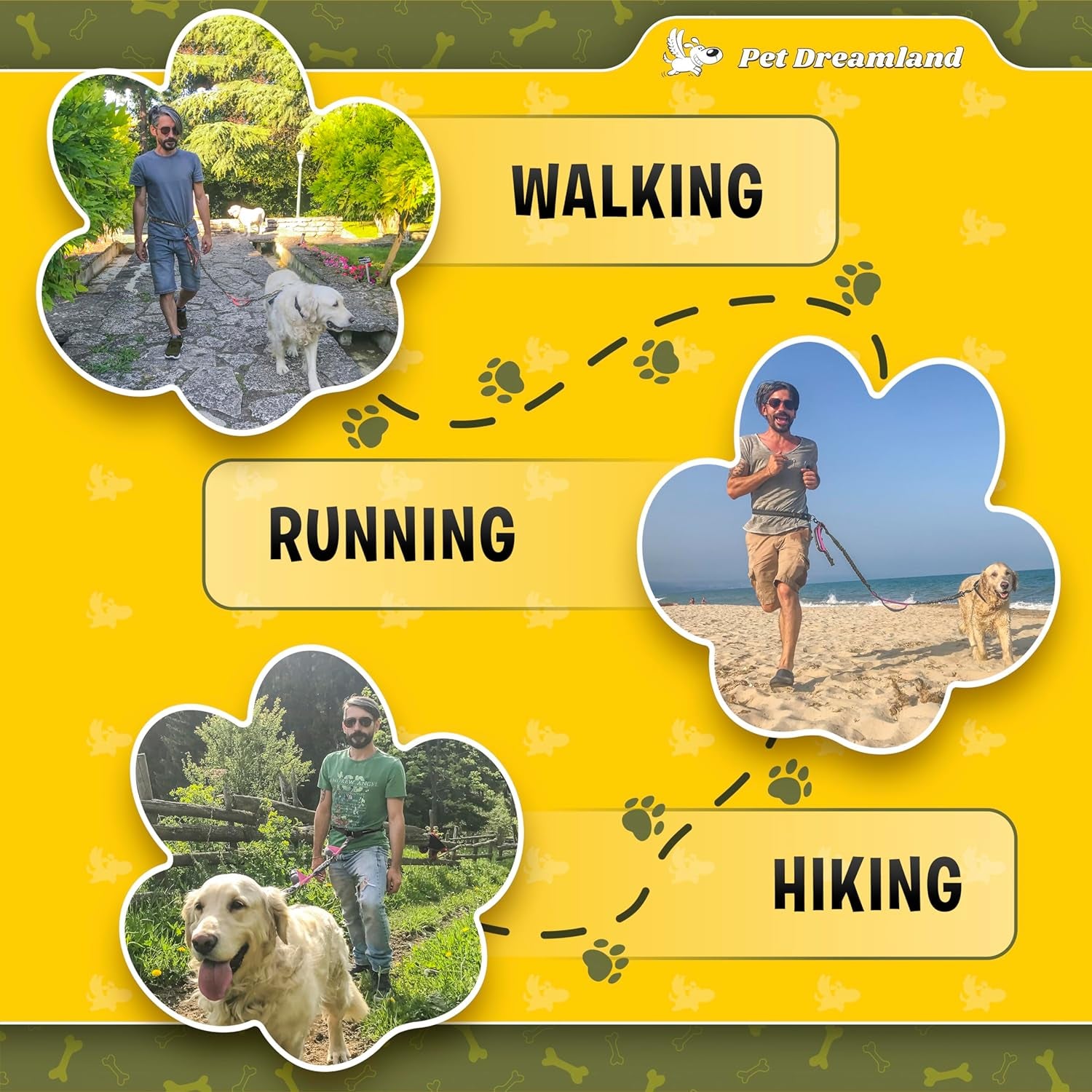 Handsfree dog leash, running leash for large dogs, durable waist belt leash, premium quality dog walking leash, and comfortable hands-free pet leash. Experience ultimate freedom and control with this exquisite handsfree leash, designed for walking, jogging, hiking, or running with your dog. The adjustable waist belt allows you to move naturally while keeping your pet safely by your side. Crafted from high-strength, tear-resistant materials, it ensures long-lasting durability and security for even the strongest pullers. The shock-absorbing bungee design reduces strain on both you and your dog, providing smooth and comfortable motion. With reflective stitching for night safety and 360° swivel clips to prevent tangling, this leash guarantees safety, versatility, and comfort. Perfect for active owners, it’s the best running companion leash your dog will love.