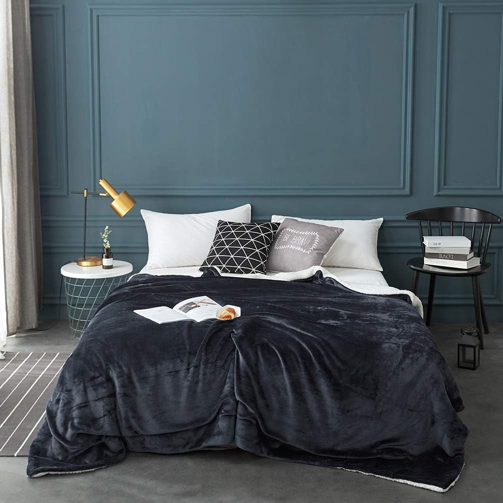 Sherpa Fleece Bed Blanket, Queen size plush blanket, super soft fuzzy blanket, warm cozy couch throw, and luxurious reversible velvet blanket. Experience ultimate comfort and warmth with this double-sided Sherpa fleece blanket, designed with premium microfiber and velvet plush for a luxurious soft feel. The Queen size offers full coverage for your bed, couch, or sofa, keeping you cozy during cold nights. Its reversible design features a fluffy Sherpa side for warmth and a smooth velvet side for elegance. Lightweight yet thermal-efficient, it provides comfort without heaviness. Durable, fade-resistant, and machine washable, this dark grey blanket complements any décor while maintaining softness after every wash. Perfect for bedroom, living room, travel, or gifting, it’s the ideal blend of luxury, warmth, and style.